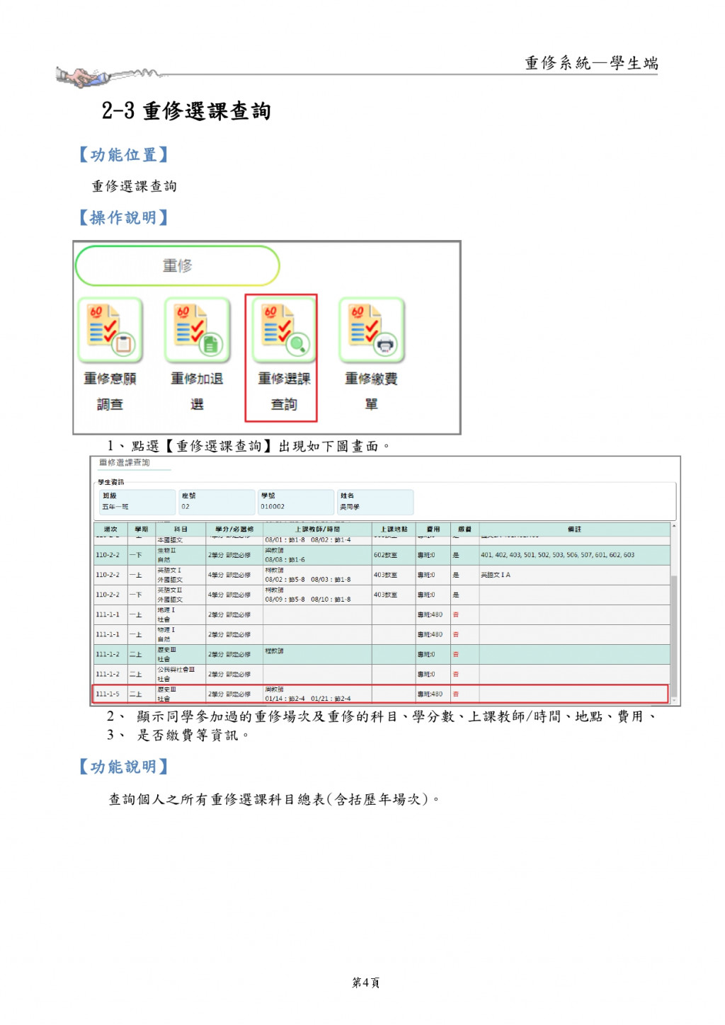 - 重補修課程繁多,請依個人需求選課,謹慎為之。
