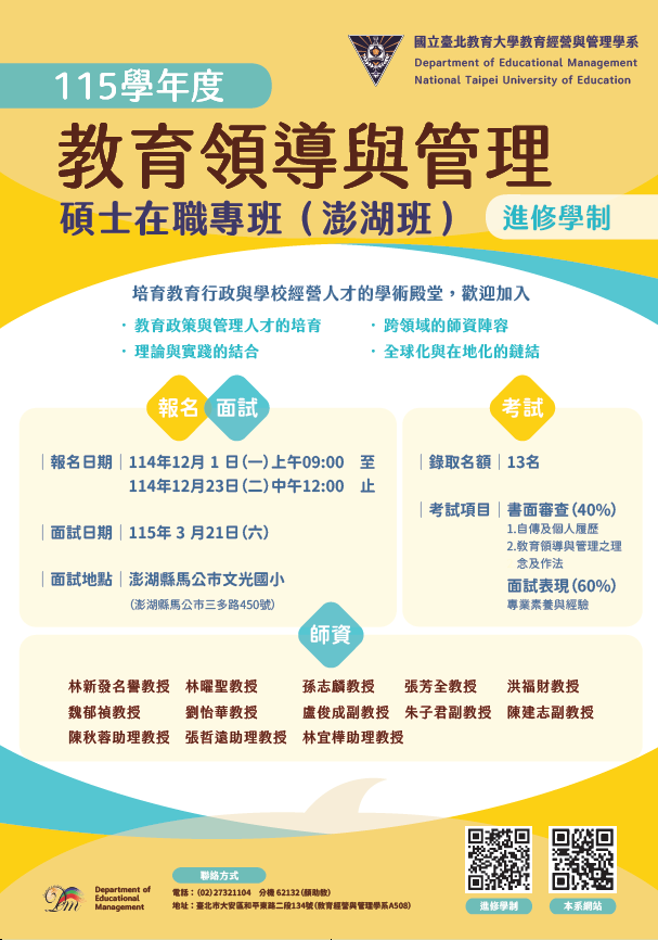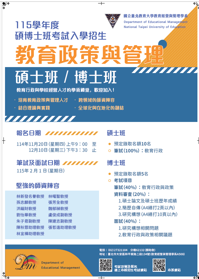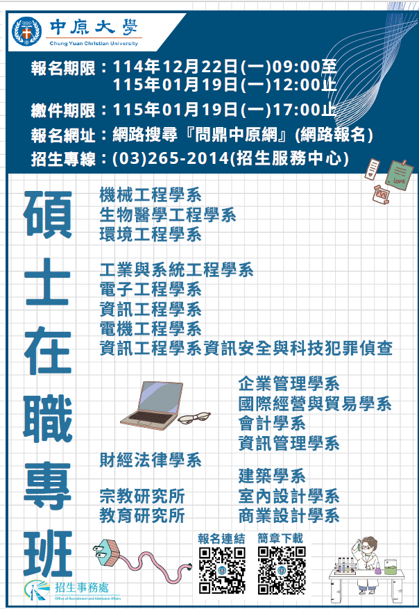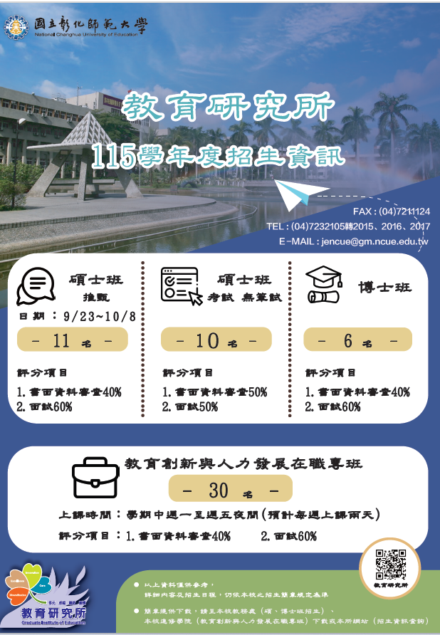 115學年度碩士班招生考試入學資訊