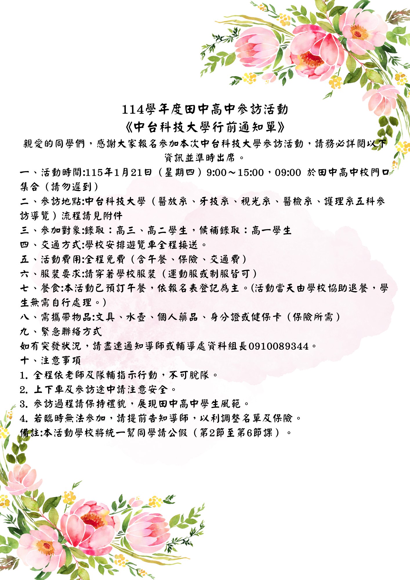 輔導處資料組將為以下同學申請公假115.1.21(星期三)第二節至第六節並且當天午餐退餐