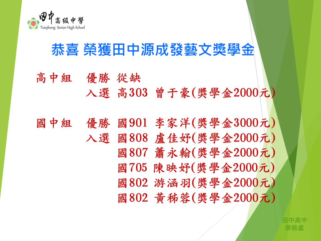 將於1月23日(五)結業式時頒發,獎狀與獎學金。