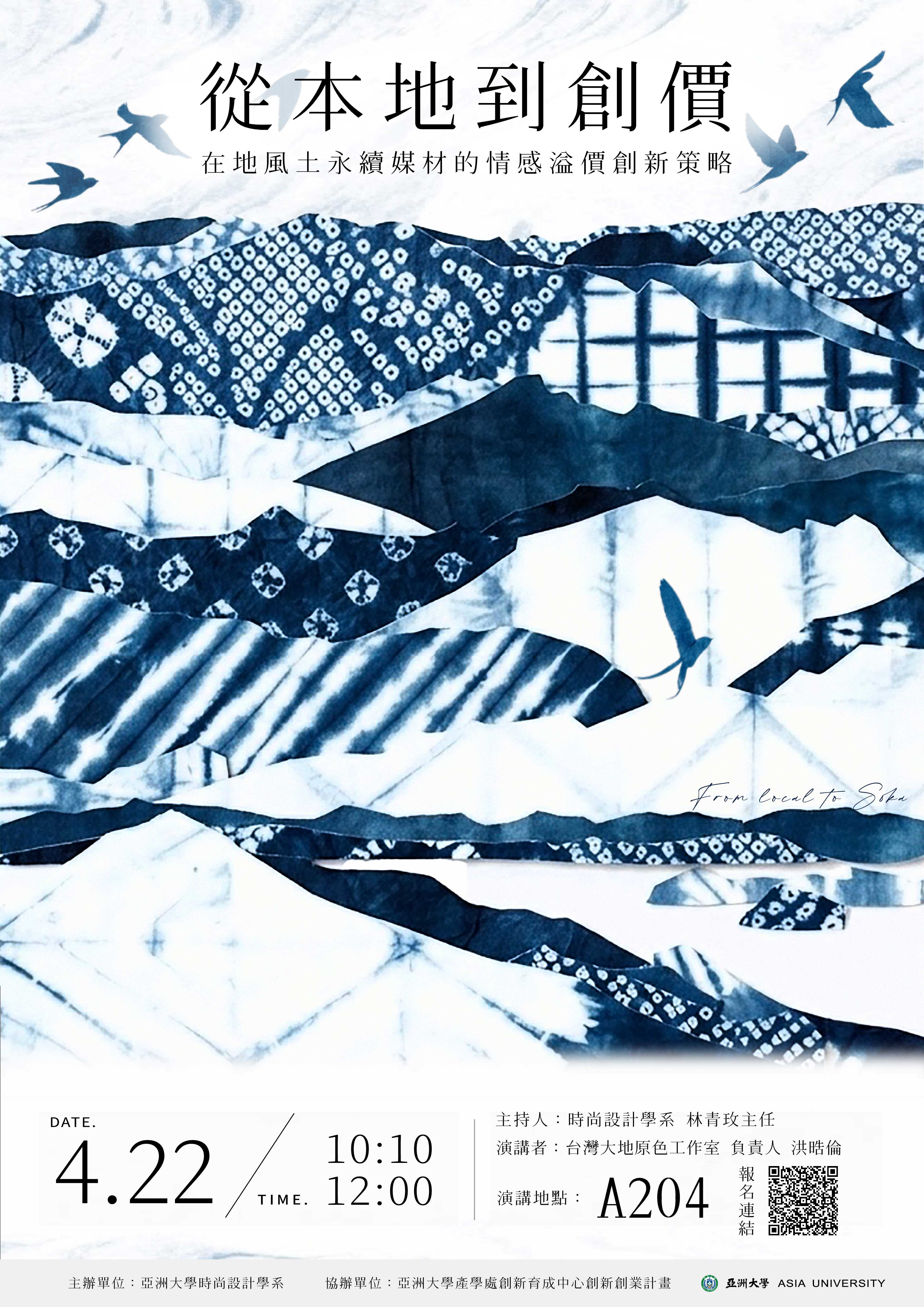染色系列講座一:從本地到創價,在地風土永續媒材的情感溢價創新策略。 |