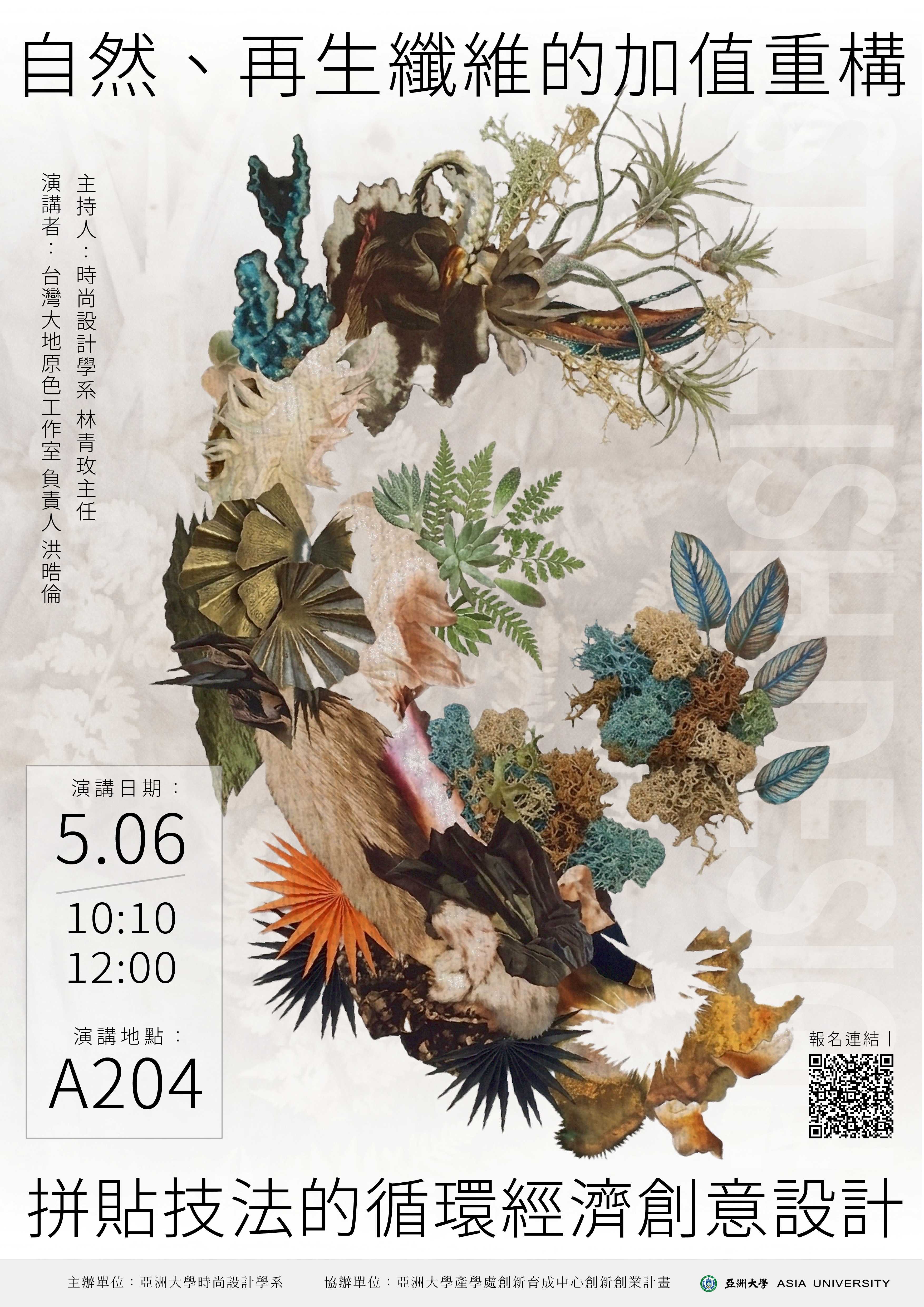 染色系列講座二:自然、再生纖維的加值重構,拼貼技法的循環經濟創意設計。 |